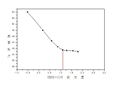 HT DBMS-45表面張力測試,是在25℃及以下濃度水溶液中測得的,結(jié)果如下: